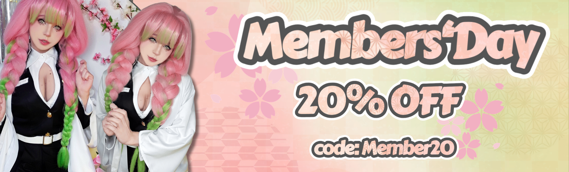 Demon Slayer Kanroji Mitsuri Pink Mixed Green Weave Long Coaplay Wigs