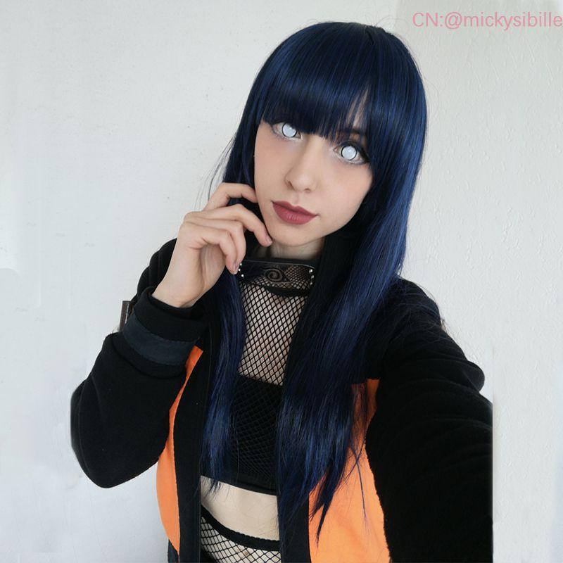 Anime Naruto Hinata Hyuga Ink Mixed Blue Bang Cosplay Wigs