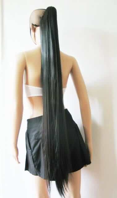 120cm super long clip on black cosplay wig straight hairpieces extension ponytail