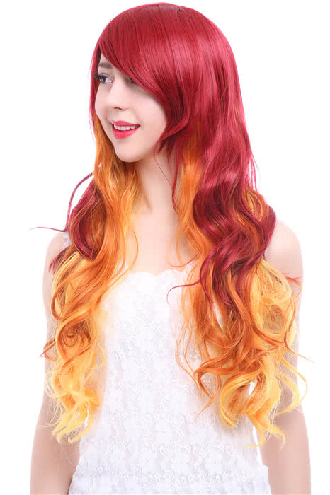 70cm Wave Red Fade Golden Long Fashion Hair Cosplay Wigs