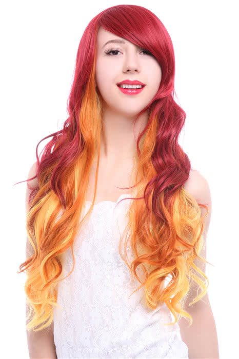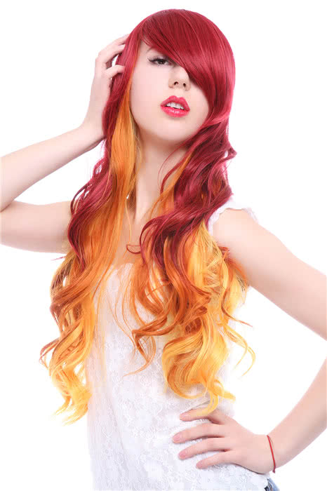 Features: Red fade golden fashion wig looks like really personality, you can use it in your daily life, surely be a bright spot in the party.