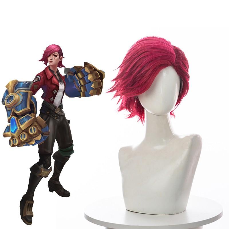 Anime LOL Arcane Vi Rose Red Short Cosplay Wigs