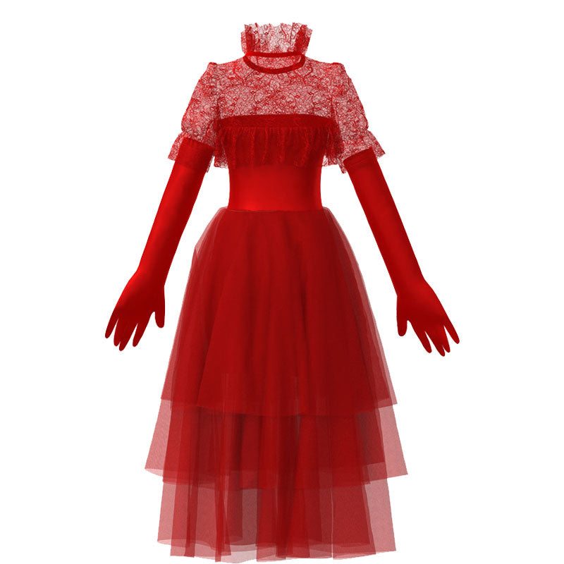 Beetlejuice 2 Lydia Deetz Cosplay Costume Red Wedding Dress Halloween Cosplay