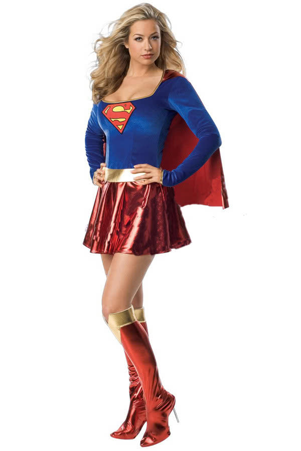 Features: The classic superhero costume with sexy and fancy design, the red trim and skirt match with the front logo of superman great for Halloween dress-up.