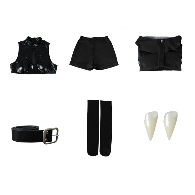 Included Items: Top, shorts, coat, belt, stocking, teeth prop