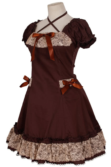 Elegant Gothic lolita DressCivil War Cotton Ball Gown cute bow Short sleeve Lace