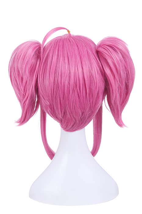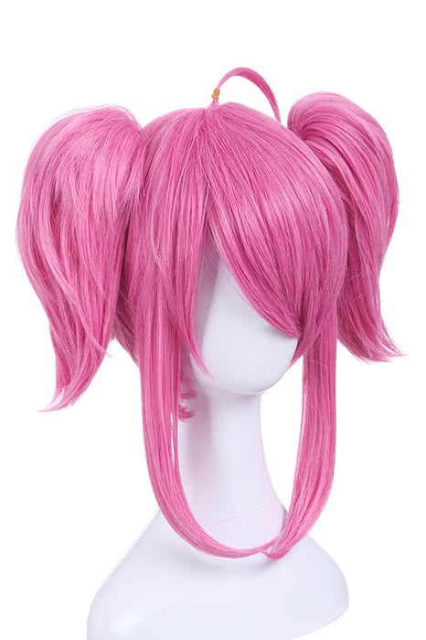 Game LOL Star Guardian Champion Lux Pink Short Cosplay Wigs with Ponytails