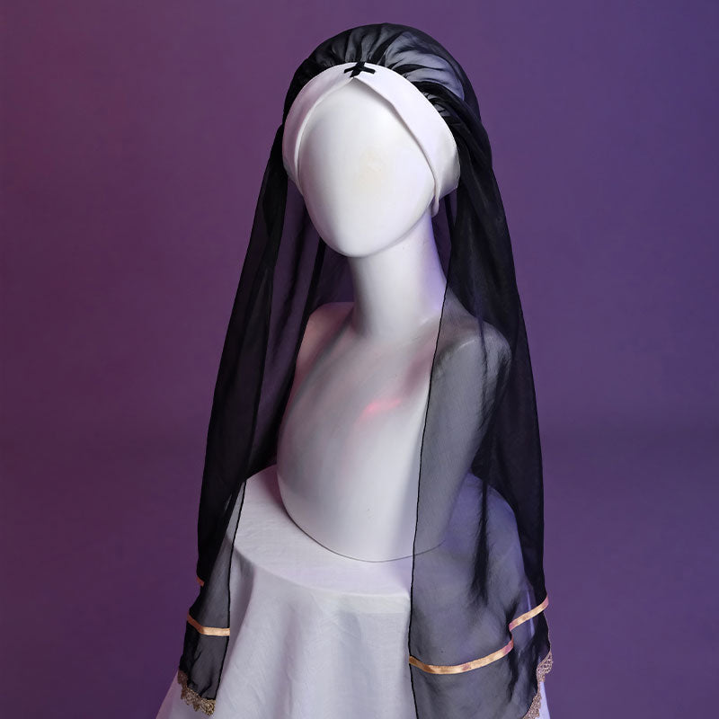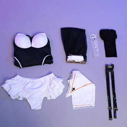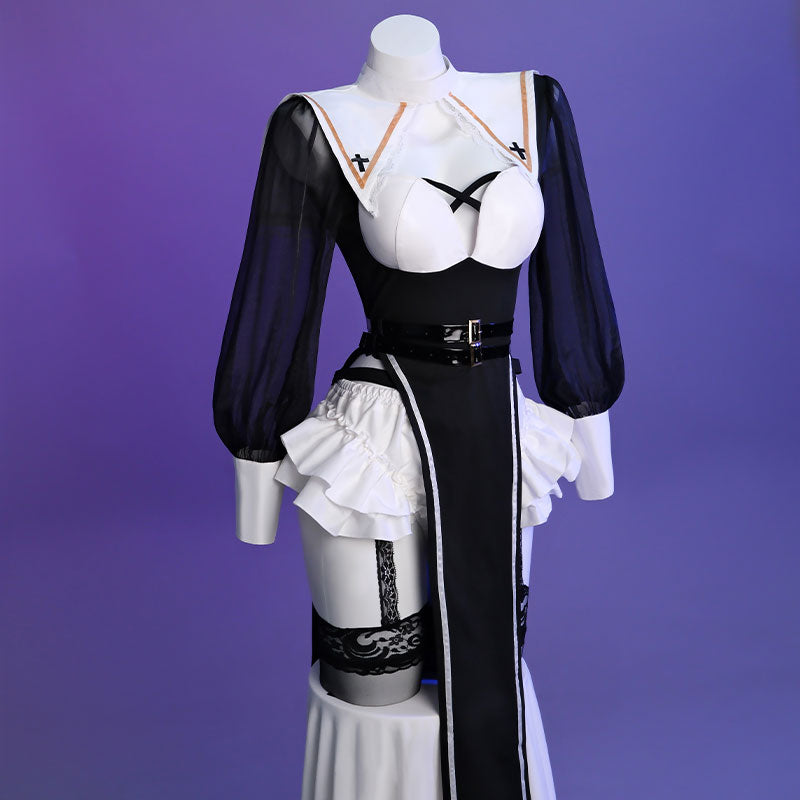 Included Items: Dress*1, stocking*1, hat veil *1, cross necklace *1, clear shoulder strap *1, suspenders *1, spare buckle *2