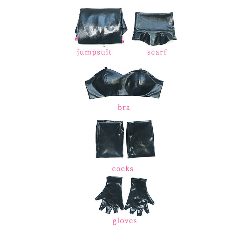 Included Items:Jumpsuit,scarf,bra,socks,gloves