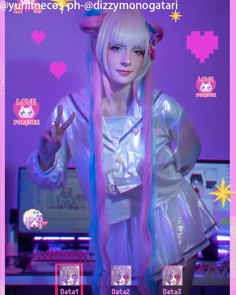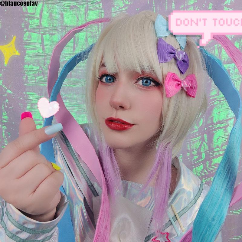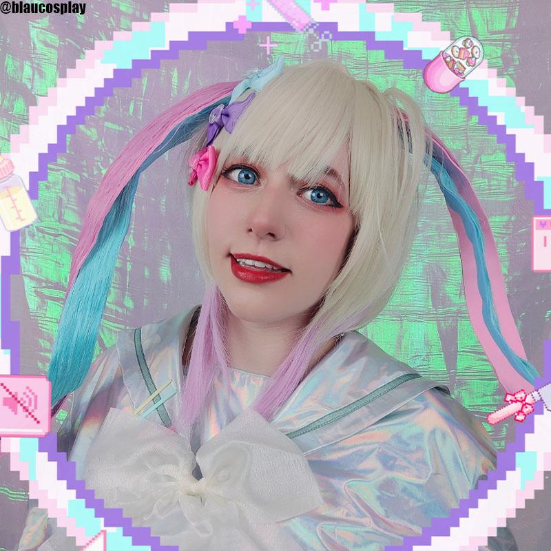 Hololive NEEDY GIRL OVERDOSE KAngel Long Pink Mixed Blue Cosplay Wigs