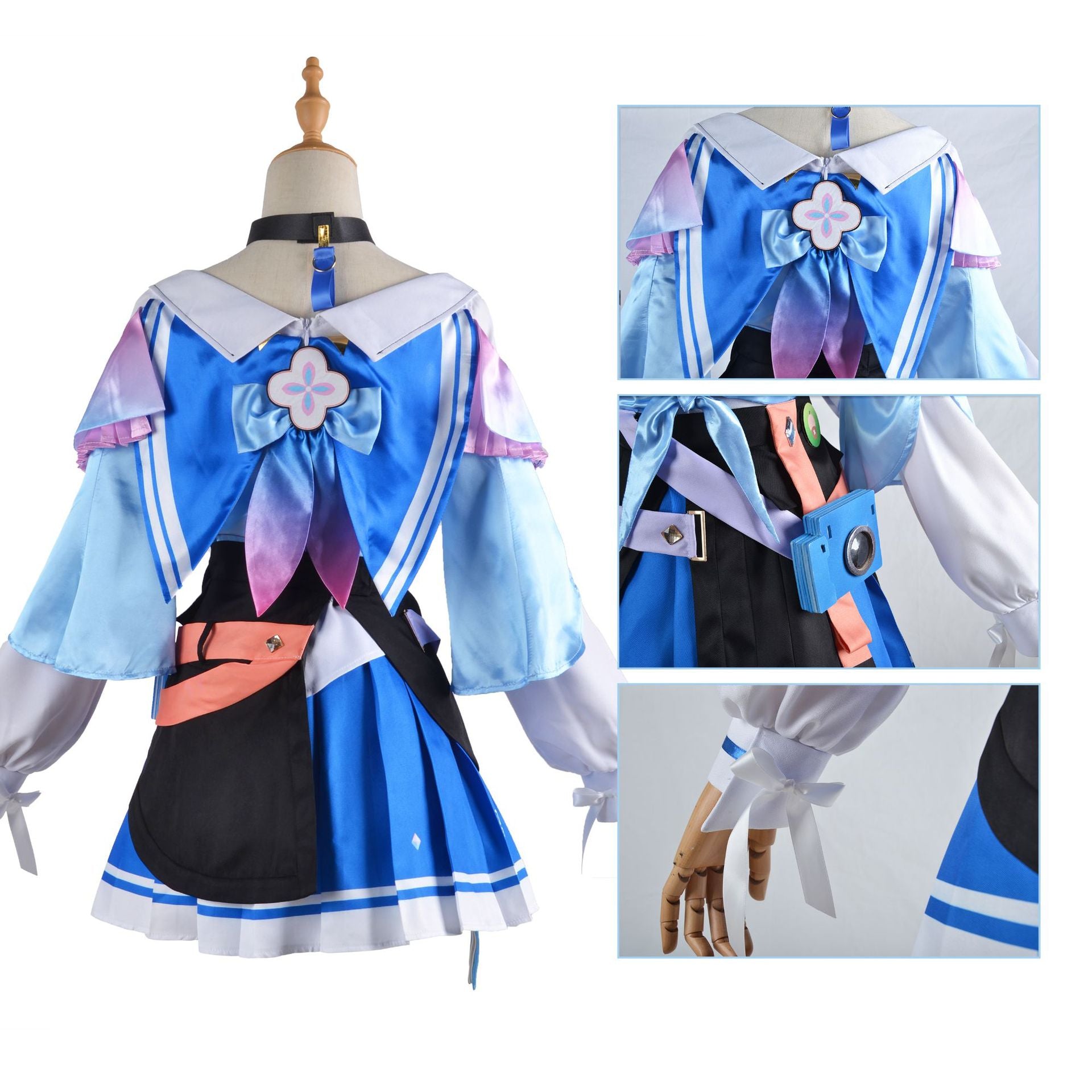 - March 7th cosplay outfit is made of high-quality fabric and features a small prop camera at the waist. The camera prop is crafted using 3D printing technology. The cosplay costume is exquisitely designed and easy to wear.