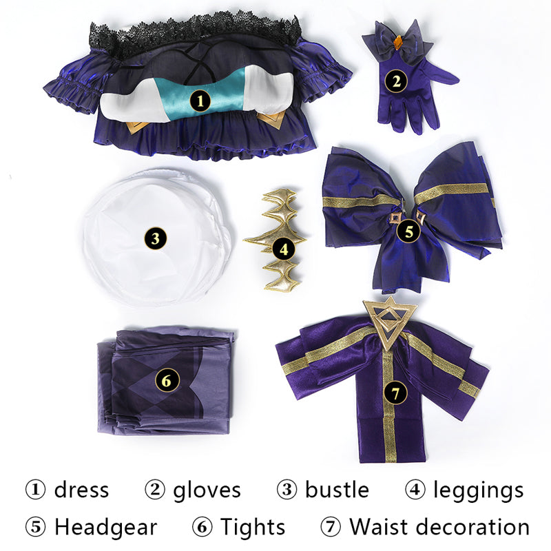 Included Items: Dress, Gloves, Bustle, Leggings, Headgear, Tights, Waist decoration