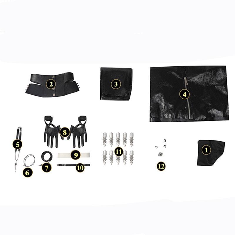 Included Items: Top, gloves, sleeves, belts, earpieces, socks, accessories
