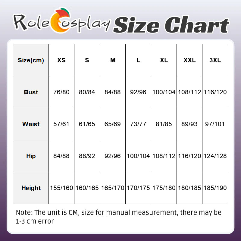 Size Guide: XS-3XL (Asian SIZE, include detailed chart)