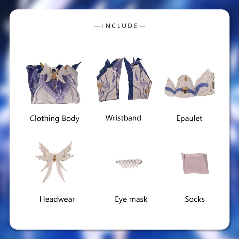 Set Includes: Clothing body, Wristband, Epaulet, Headwear, Eye mask, Socks