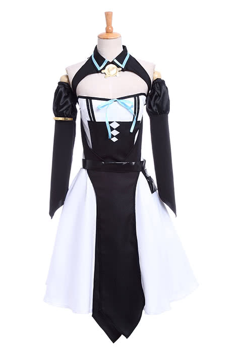 Features: A black and white dress with detached black sleeves, a blue bow decorates the front of her bodice, so personality, this costume will surely make you a bright spot in the party.