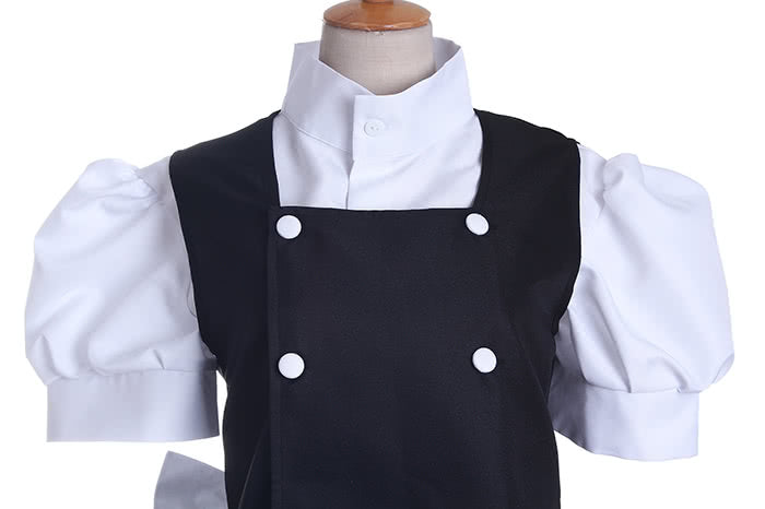 Features: There is a small bowknot on hat,the big one is on the back.Shirt is long and apron is lenient.