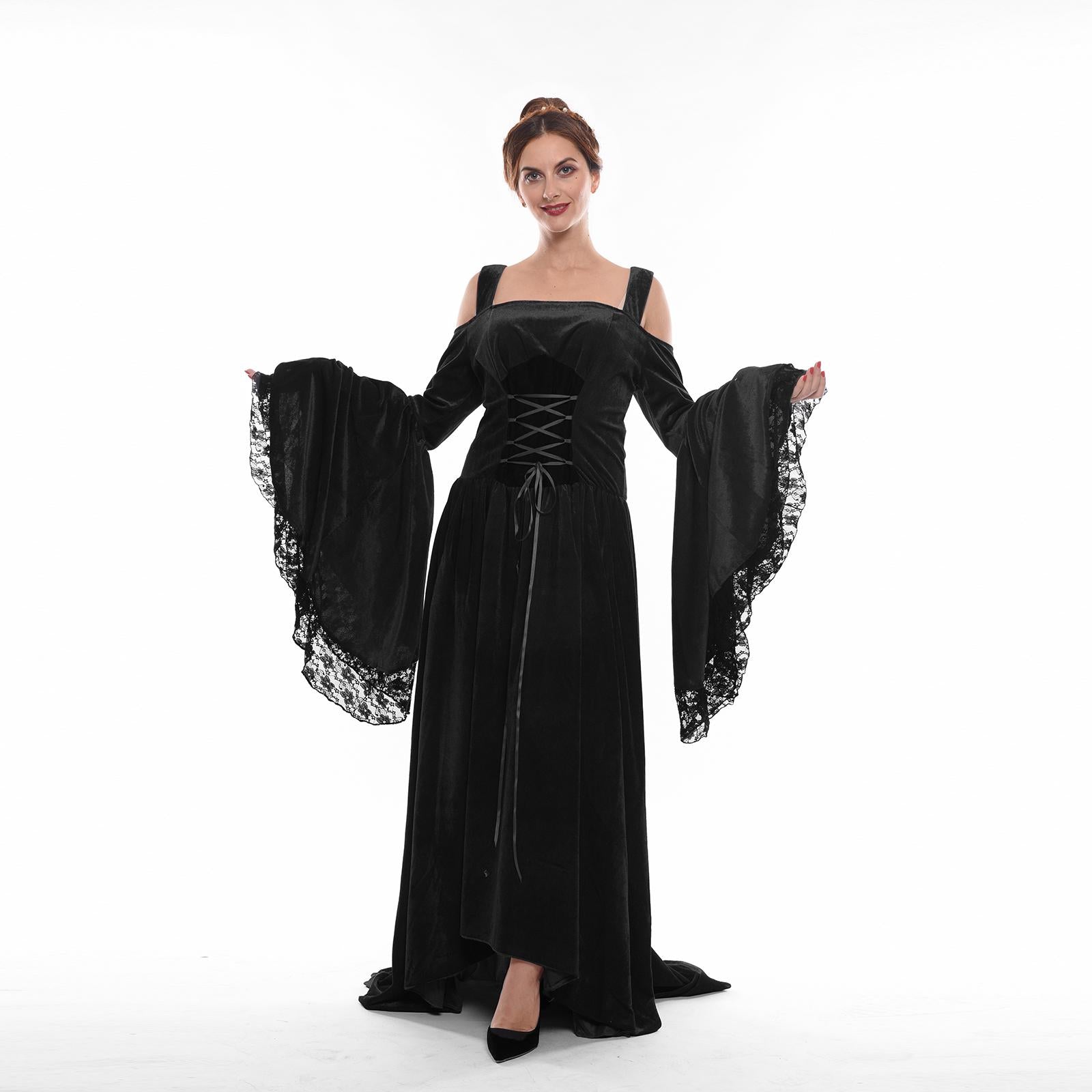 Victorian Women Flannel Wide Sleeves Long Skirt